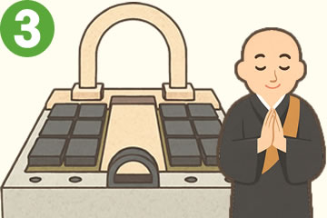 A. 合祀(ごうし)とは、他の方のお骨と一緒に納骨する方法です。お骨壺から取り出し、合同のモニュメントの下にお納めします。